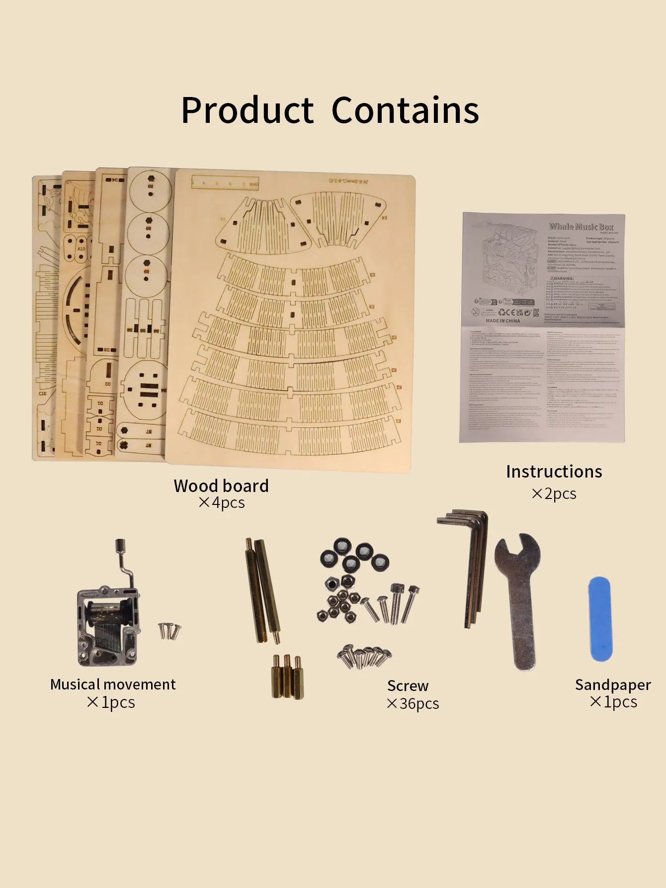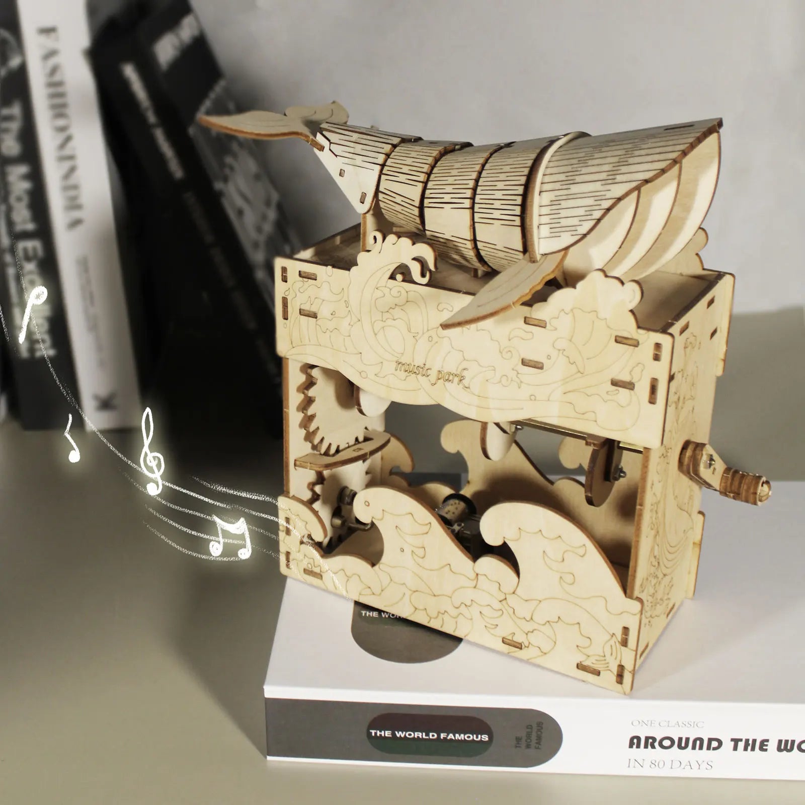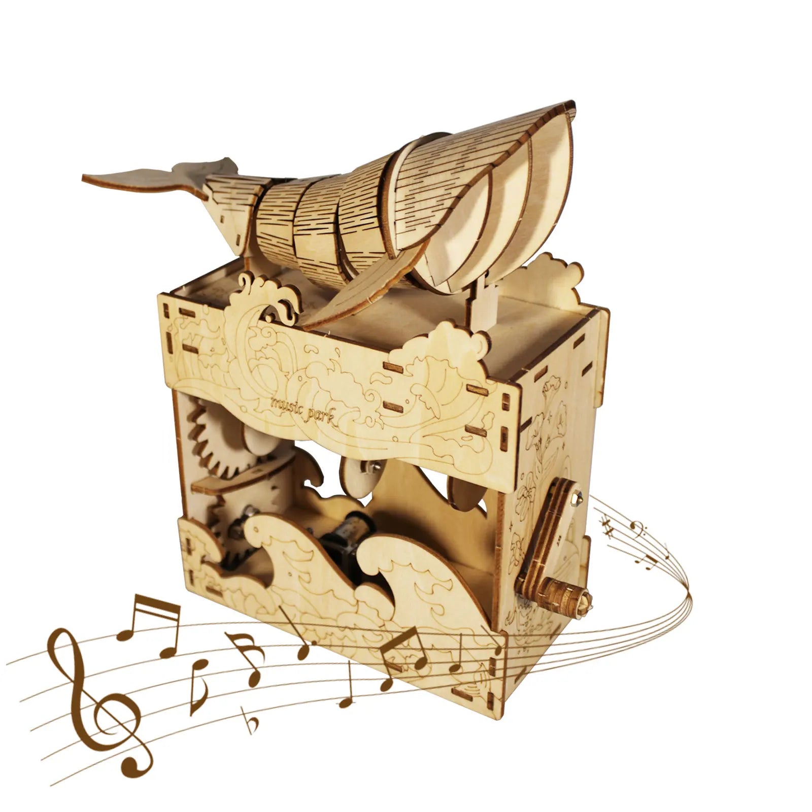 3d wooden puzzle Hand Whale music box Play 《Beautiful Seaside》 Handmade Assembly Model kit Holidays birthdays Christmas gifts