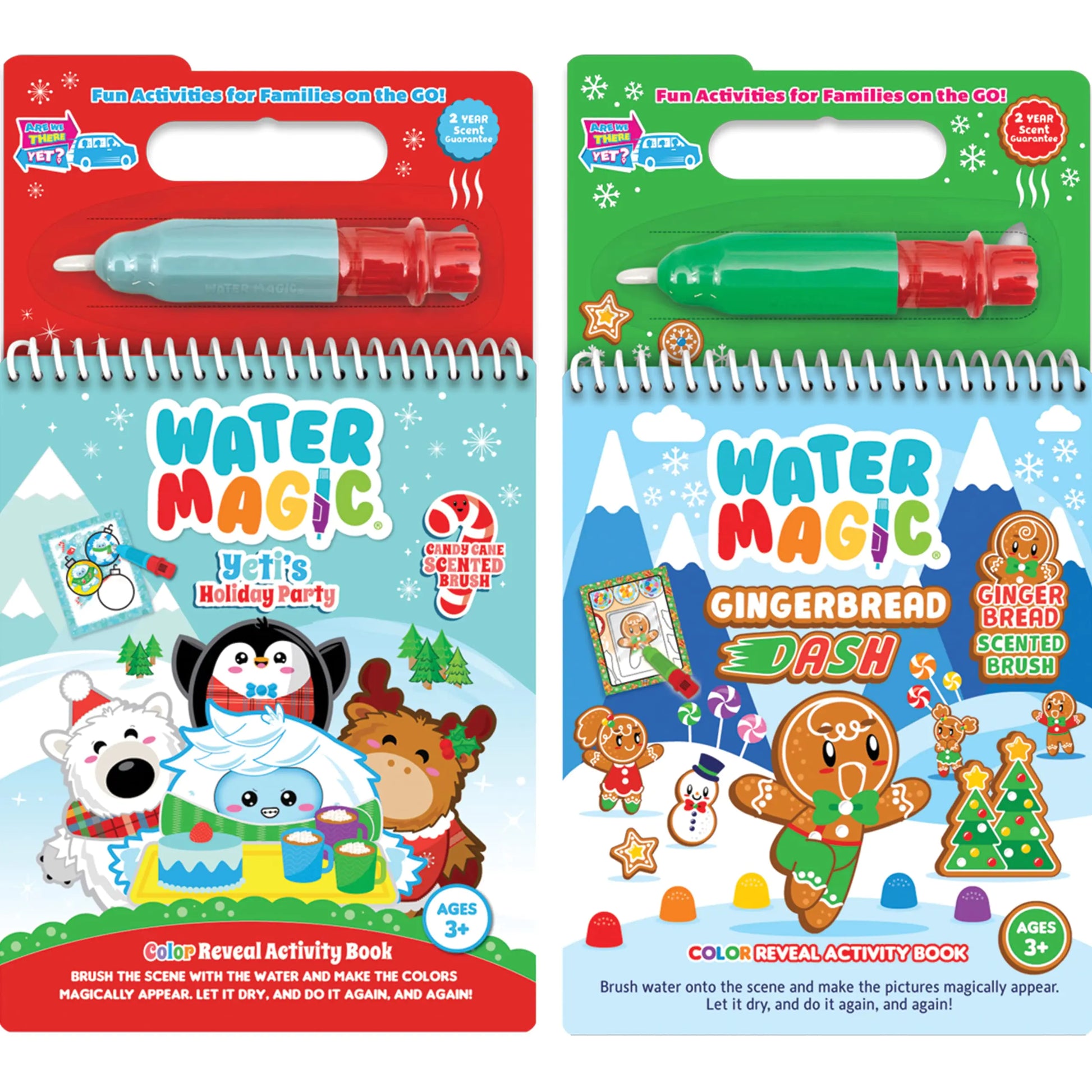 Discover the magic of coloring with the Scentco Holiday Water Magic water-reveal activity books! This exciting 2-pack features delightful Candy Cane and Gingerbread scents with specially designed water pens. Just add water to watch the pages come alive with vibrant colors. When dry, the colors disappear, ready for endless reuse!