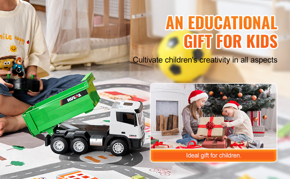 Built to Last: Made from durable materials, including a sturdy bed, battery compartment, and simulated hydraulic rod, this remote control dump truck handles over 6 pounds of load with ease. It's tough enough to keep up with all the adventures your kids can dream up.