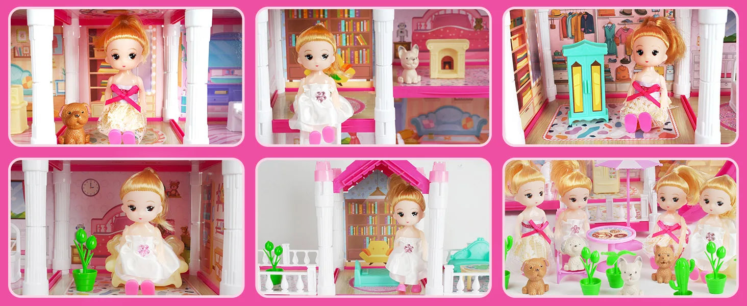 【Educational Assembly Toys】We encourage children to use their unlimited creativity to build a doll castle by themselves or with their friends or parents.The process of assembling a dollhouse not only stimulates children's imagination and develops their hands-on,communication skills and thinking ability, but also enhances the relationship between children and their friends, children and parents, and enables them to enjoy role-playing with friends and family, which is a fun and attractive toy