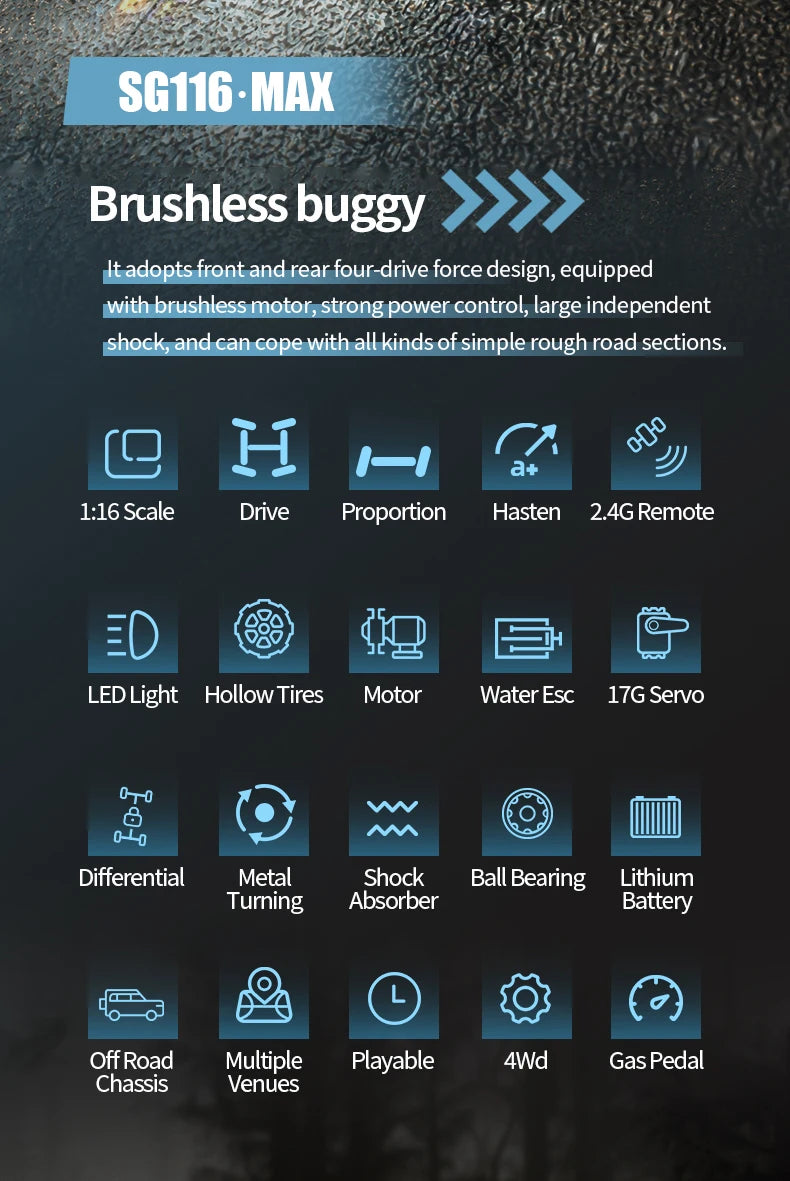 ZLL SG316 MAX 1:16 High Speed Drift Racing 80KM/H Brushless Motor 4WD RC Off Road Car Monster Trucks Toys for For Kids Gifts