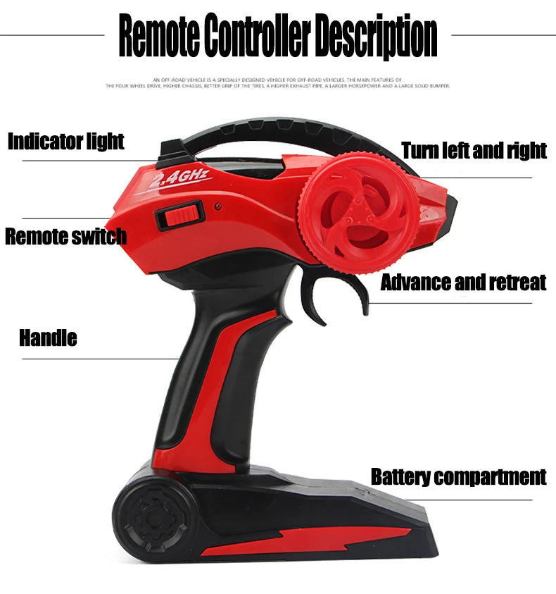 A. 37cm size version,car scale is 1:12,it is 4WD with led light ,remote control range is about 50m.